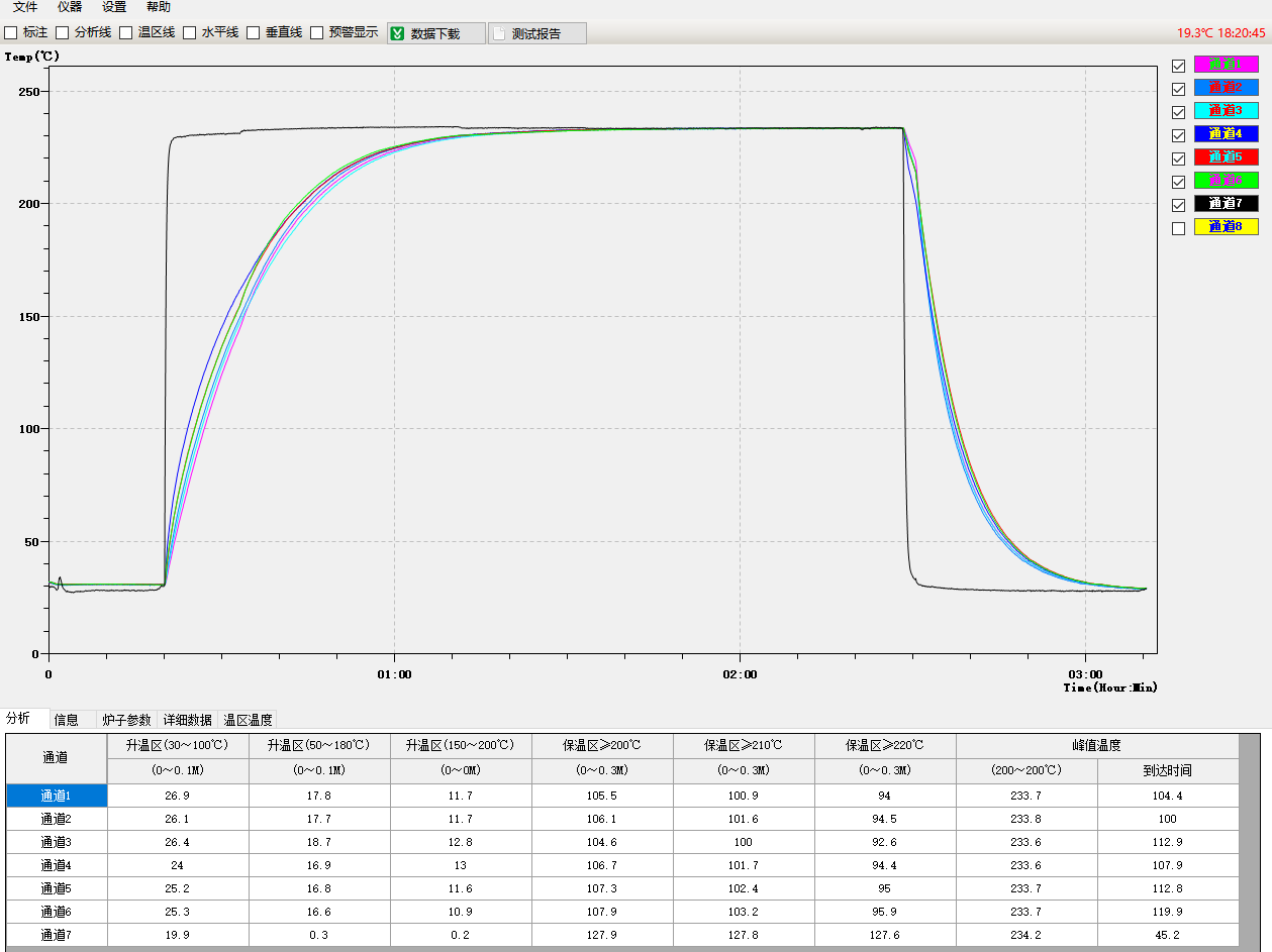 9、軟件具有智能預警功能,測試出來曲線瞬間判斷出來爐溫是否合格。